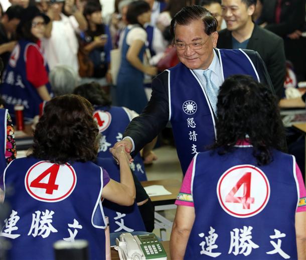 連戰(zhàn)表示,看到志工媽媽們每天只睡4、5個(gè)小時(shí),就積極來幫忙打電話,令他非常感動(dòng),所以今天專程來當(dāng)面感謝大家,希望助勝文一臂之力。