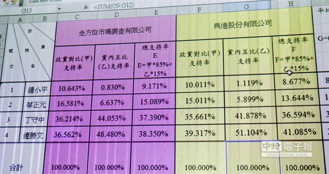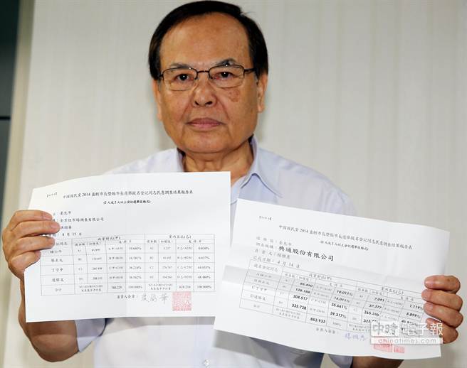 臺(tái)北市國(guó)民黨部主委鍾則良公布兩家民調(diào)公司的結(jié)果,計(jì)算之后由連勝文勝出。(圖片來(lái)源:臺(tái)灣《中時(shí)電子報(bào)》)