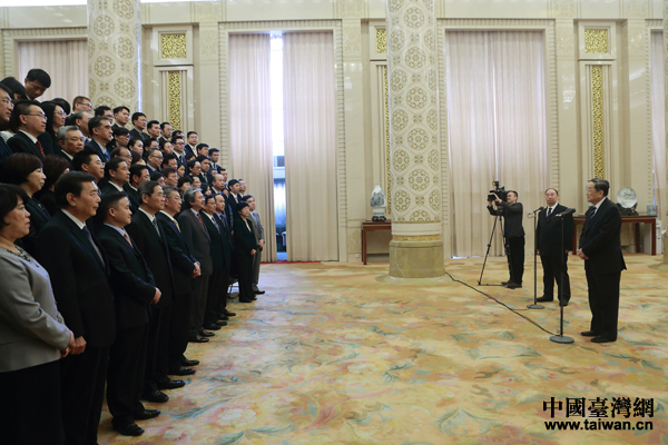 俞正聲會(huì)見第四屆兩岸及香港《經(jīng)濟(jì)日?qǐng)?bào)》財(cái)經(jīng)高峰論壇代表并講話。(中國臺(tái)灣網(wǎng) 于斯文 攝)