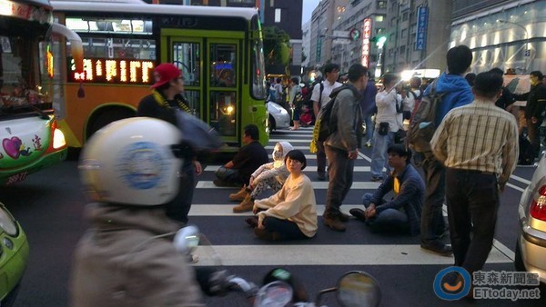 反核民眾29日傍晚癱瘓忠孝東路交通,引發(fā)用路人不滿。(圖片來源:臺(tái)灣東森新聞)