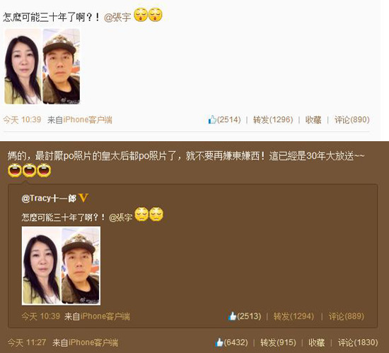 張宇夫婦二人微博截圖。