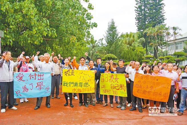 近百人到水林初中慰留,強(qiáng)調(diào)悲劇令人心痛,但好人才不應(yīng)因此離去。(圖片來(lái)源:臺(tái)灣中時(shí)電子報(bào))