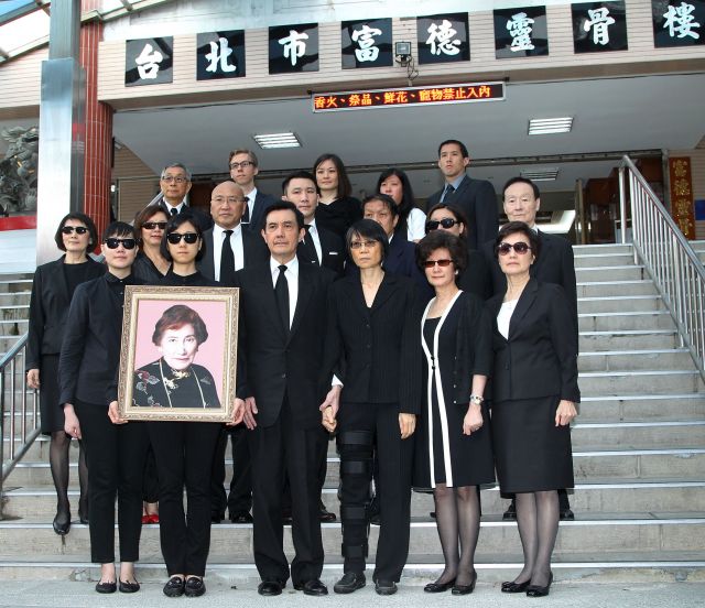 馬英九與家人感謝各界對(duì)母親秦厚修的關(guān)心,鞠躬致謝。(臺(tái)媒圖)