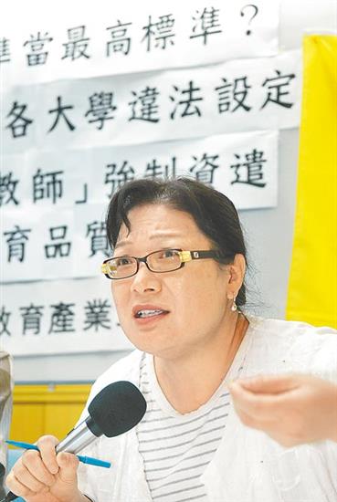 林柏儀點(diǎn)名吳鳳科大、大漢技術(shù)學(xué)院、真理大學(xué)、蘭陽(yáng)技術(shù)學(xué)院及樹(shù)德科大等校,均以這類(lèi)手法資遣教師引發(fā)恐慌。以吳鳳科大為例,今年8月起全校要資遣31位超額教師,丁瑛瑤名列其中。她昨含淚指控,學(xué)校以生師比30為基礎(chǔ),推算系上的專(zhuān)任教師員額,超過(guò)者即為超額教師,強(qiáng)制資遣。資管系現(xiàn)有17位專(zhuān)任教師中,8月1日起有7人要被資遣。