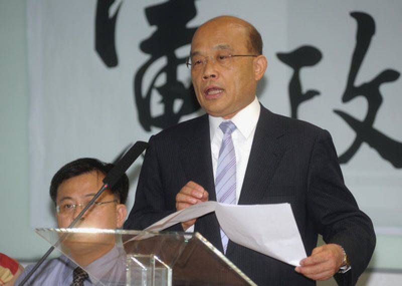 民進黨主席蘇貞昌16日在中央黨部出席會議時表示,“立委”席次應(yīng)合理增加,在200到300人間才符合比例,并應(yīng)廢除“考監(jiān)兩院”。(圖片來源:臺灣“中央社”)