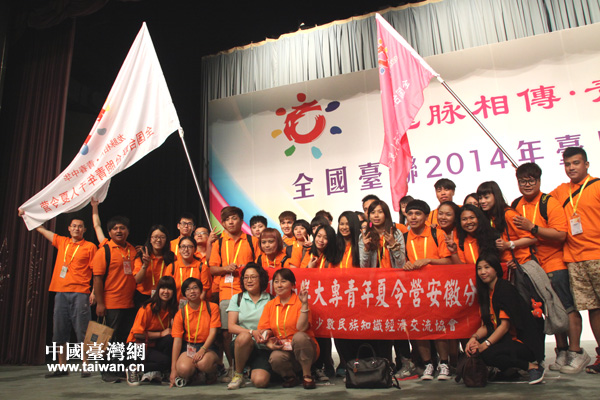 4日上午,全國臺聯(lián)2014年臺胞青年千人夏令營開營儀式在北京國際會議中心舉行。圖為臺灣青年在開營儀式后合影留念。(中國臺灣網 李徽 攝)