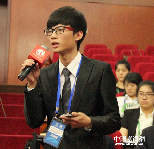 現(xiàn)就讀臺灣輔仁大學(xué)心理學(xué)博士的陸生林楠就就業(yè)問題向陳會長提問。(中國臺灣網(wǎng) 高斯斯 攝)