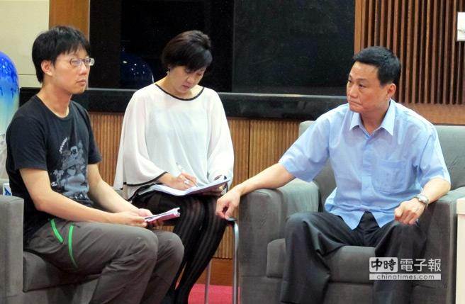 高雄氣爆遇難者家屬自救會(huì)會(huì)長陳冠榮(左)向高雄市議長許昆源(右)陳情,提出訴求。(圖片來源:臺(tái)灣《中時(shí)電子報(bào)》)