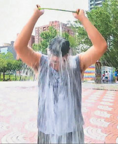 連勝文昨天上午趁行程空檔在大安森林公園挑戰(zhàn),穿著短袖、短褲、夾腳拖的他拿起裝滿冰塊的大水桶,一口氣從頭灌下,直呼“爽”、“好涼”。