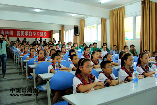 富林三小的學(xué)生們認(rèn)真聆聽來自海峽兩岸的叔叔阿姨們的期望(中國臺灣網(wǎng) 李徽 攝)