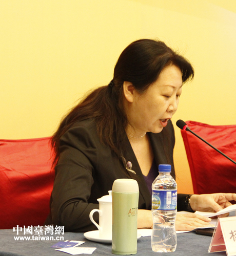 全國(guó)臺(tái)灣研究會(huì)常務(wù)副秘書(shū)長(zhǎng)楊幽燕主持開(kāi)幕式。(中國(guó)臺(tái)灣網(wǎng) 李杰 攝)