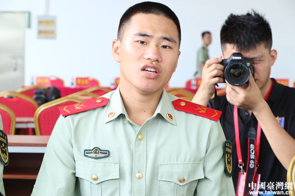 和平中隊二班班長胡賢威向記者講述強軍故事。(中國臺灣網(wǎng) 尹賽楠 攝)