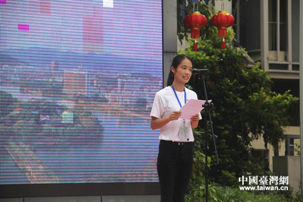大陸學(xué)生代表蘇婷婷發(fā)表感言。(中國臺灣網(wǎng) 王莉婷 攝)