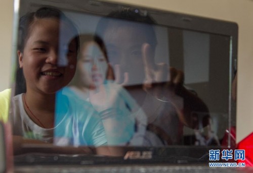 8月20日,在巴南區(qū)南彭街道將軍灣村,留守兒童楊渝(左)在大學(xué)生村官汪瓊的幫助下和母親視頻聊天。當(dāng)日,重慶市巴南區(qū)200多名大學(xué)生村官來(lái)到結(jié)對(duì)幫扶的留守兒童家中為他們補(bǔ)習(xí)功課,讓他們和在外地的家長(zhǎng)視頻聊天,并為孩子們進(jìn)行心理輔導(dǎo)。本次活動(dòng)還專門為留守兒童準(zhǔn)備了一堂“收心”課,幫助孩子們提前適應(yīng)新學(xué)期的到來(lái)。新華社記者陳誠(chéng) 攝
