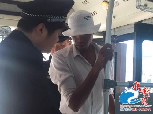 今天上午9:00在戶部街公交車站27路司機王師傅報警,在南京市江寧區(qū)氣象學院一名黑人男青年上公交車后在長江路突然在座位上要滑倒,幾位老人將他扶穩(wěn)后,男子居然肆無忌憚在公交車廂里撒尿,司機隨即停車讓乘客下車并且報警,警方將男子帶下車。