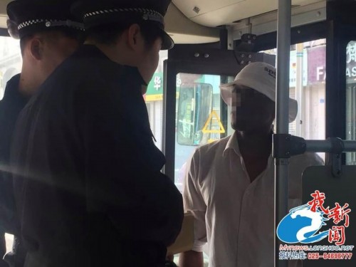 黑人男子與警察交流。