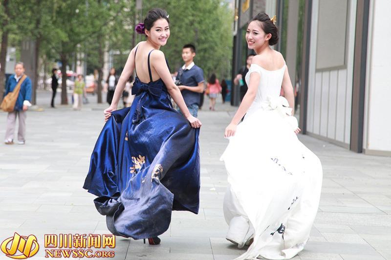 長相似景甜(左),準(zhǔn)空姐變身“顏如玉”模特,展示傳統(tǒng)文化。