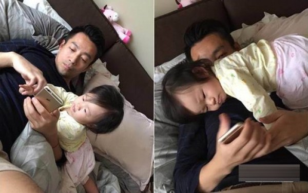 汪小菲與女兒玩手機(jī)