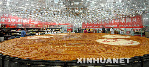新制作完成的大月餅(8月21日攝)。
