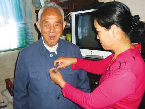 昨天中午,記者慕名來到葛春霞家,前不久剛退休的葛春霞,正忙著給百歲公公端飯。令記者贊嘆 的是,百歲老人宋蓬來耳聰目明,思維敏捷,精神矍鑠。見到記者后,老人便滔滔不絕地直夸聾啞媳婦葛春霞。他說:“自從她進了我家的門,我就享清福,她把我當親生父母,無微不至照應(yīng)我。