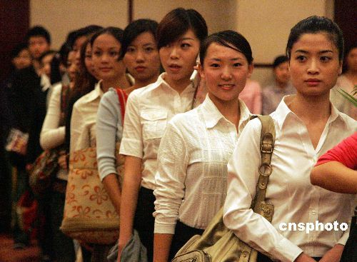 10月13日,澳門航空在上海計(jì)劃招聘二十多名乘務(wù)員,僅半天就吸引千余名上海年輕男女前往應(yīng)聘。澳門航空曾多次在上海招聘,當(dāng)年入行者現(xiàn)在已成為澳門航空乘務(wù)部的骨干,有的還擔(dān)任了公司的中層干部。中新社發(fā)潘索菲 攝
