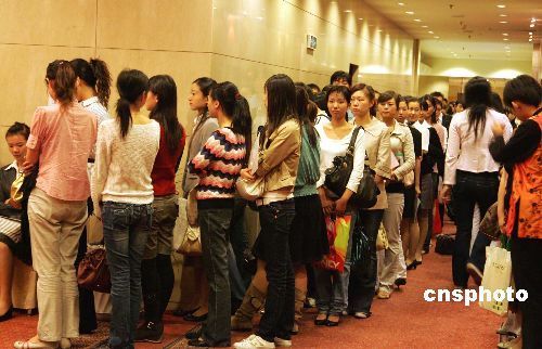 10月13日,澳門航空在上海計(jì)劃招聘二十多名乘務(wù)員,結(jié)果吸引千余上海美少女們前往應(yīng)聘,大排長龍。中新社發(fā) 潘索菲 攝