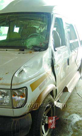 這一切,就發(fā)生在幾分鐘內(nèi)。事后,金師傅才感覺(jué)到自己緊緊握住方向盤(pán)的左手已經(jīng)被象鼻打傷,而坐在身后的一名女乘員因受到重?fù)艋杳圆恍,還有一名男乘員受了輕傷。