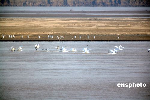 十一月十七日以來,鄭州黃河濕地保護區(qū)工作人員連續(xù)在保護區(qū)內進行鳥情觀察,共發(fā)現國家二級保護動物大天鵝九十三只和灰鶴兩只,以及大種群分布的豆雁一千三百余只,綠頭鴨五百三十只,大白鷺三百三十二只。它們成群的在黃河上空飛翔,在灘涂草叢中覓食,場面壯觀。今年在這里停歇和越冬的鳥類比以往數量更多,種群更大。據推算,各種水鳥達到三十萬只。