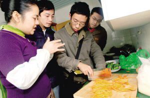 圖片說明:昨天上午,研究生保姆正在接受廚藝指導(dǎo)。