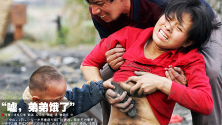“噓!別鬧,弟弟餓了,媽媽要給弟弟喂奶”,康小英一邊對站在旁邊哭泣的女兒說著,一邊拿起一塊泥巴,把泥巴當(dāng)作已經(jīng)溺水身亡的兒子,給“泥巴”喂奶。