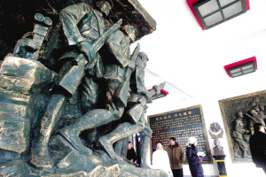在普蘭店市唐房烈士陵園的入口處,兩座碩大的雕塑立在門兩旁,精心雕刻的各種獅柱石雕陵園內(nèi)隨處可見,280位烈士的墓碑靜靜地安放在草叢中。紀(jì)念館中,原立憲從國(guó)內(nèi)各地拍攝的圖片被主人精心布展。歷史仿佛在人們參觀時(shí)凝固了:長(zhǎng)征、抗日戰(zhàn)爭(zhēng)、解放戰(zhàn)爭(zhēng)以及烈士事跡、名錄一一再現(xiàn)!坝20多位烈士的雕塑是我們根據(jù)原型雕刻的,有些部隊(duì)官兵看到這些英雄的雕塑,眼淚嘩嘩流!痹椊榻B,從免費(fèi)開館的當(dāng)天起到現(xiàn)在,已經(jīng)有幾千位參觀者到陵園追悼烈士英魂。