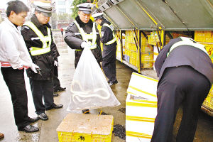 “咝!咝!”一條大型的蛇吐著舌頭將網(wǎng)袋頂起欲攻擊檢查的人!由于司機(jī)無(wú)法提供任何有效的憑證,交警將車扣下通知市林業(yè)部門前來(lái)調(diào)查。