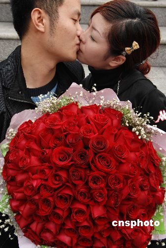 資料圖:二月十四日,深圳歡樂谷舉辦“甜蜜玫瑰之吻”特別活動,一對對情侶在玫瑰花相伴下激情相擁熱吻,表達心中的愛意,共度浪漫情人節(jié)。 中新社發(fā) 陳文 攝