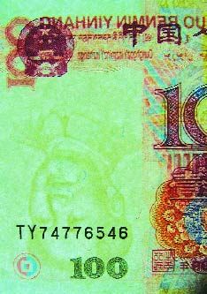 2003年,周女士從銀行取工資后到商場(chǎng)購物。收銀員接過她付的幾張100元人民幣后一張張地鑒別真?zhèn),并?jīng)過驗(yàn)鈔機(jī)檢驗(yàn)。雖然每張錢都通過了檢驗(yàn),但收銀員仍然從中挑出一張反復(fù)對(duì)著燈光察看,然后把這張100元人民幣退還給周女士。收銀員也不說原因,只說:“你換一張吧!敝芘坑謾z查這張人民幣,并未發(fā)現(xiàn)問題。此后她拿著這張錢在其他地方多次消費(fèi),都無人愿收,但驗(yàn)鈔機(jī)對(duì)這張錢從來不報(bào)警。后來她的丈夫發(fā)現(xiàn)了問題所在,原來這張100元人民幣上的毛主席水印頭像是倒立的。此后,周女士夫婦就把這張錢收藏起來。今年以來,她通過媒體報(bào)道得知,這種錯(cuò)版人民幣“價(jià)值不菲”。今年五一過后,她把這張人民幣帶到人民銀行鑒定真?zhèn)。?jīng)鑒定,這的確是一張真幣。