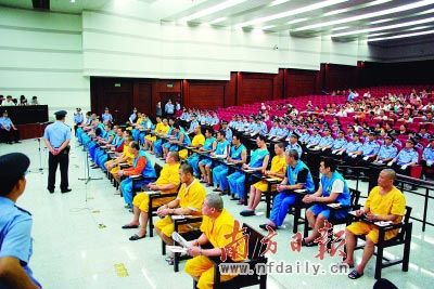 昨日上午,禪城區(qū)人民法院在佛山市中院,公開開庭審理一起黑社會性質(zhì)組織犯罪案件,被告人張超剛、咸冠宇、王林等36人分別涉嫌組織、領(lǐng)導(dǎo)、參加黑社會性質(zhì)組織罪、開設(shè)賭場罪、搶劫罪、綁架罪、故意傷害罪、聚眾斗毆罪、非法持有槍支彈藥罪等10項罪名。