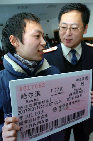 現(xiàn)年23歲的小白家住四川省廣安市的一個農(nóng)村,是哈爾濱工業(yè)大學(xué)建筑學(xué)院的研究生,剛剛讀一年級。小白告訴記者:“我家離哈爾濱實在太遠(yuǎn)了,每次回家都要在車上坐40多個小時,買票更是頭疼的大問題。今年元旦剛過,系里的老師說要給四川籍的學(xué)生贈票,這個禮物對我是最需要了!