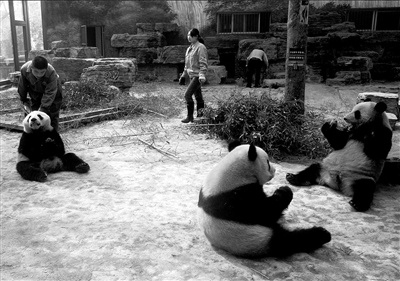 北京冬末的兩場雪,讓從沒見過雪的小家伙們格外興奮,本來還擔(dān)心它們不習(xí)慣北京的冬天,但沒想到熊貓們竟然很快學(xué)會和飼養(yǎng)員“打雪仗”。“我們都很想家了,它們肯定一樣!痹陔x川9個月之后,大熊貓和飼養(yǎng)員都不再“樂不思蜀”。