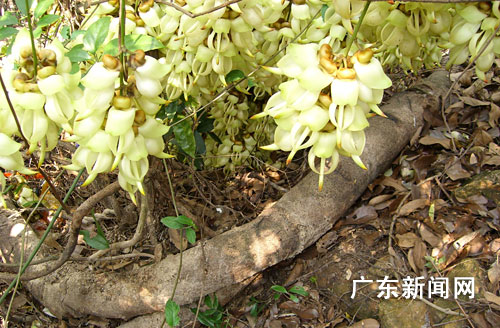 據(jù)該園工作人員介紹,這棵天有十萬朵花的主藤干直徑有30厘米,藤莖攀長周圍覆蓋約1000平方米。據(jù)中科院華南植物研究所教授陳邦余判斷,這棵禾雀至少生長了600年,非常罕見,該公園準備為這棵藤申報吉尼斯世界記錄。