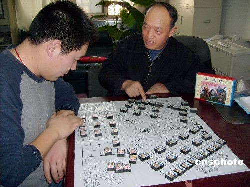 魏樹愛是中國(guó)第二大油田勝利油田勝利采油廠離退中心的一位退休教師。他告訴筆者,很喜歡看三國(guó)演義,從上世紀(jì)九十年代開始,就開始琢磨三國(guó)棋了,光是三國(guó)棋盤,就畫了100多張,把家里的掛歷都給畫滿了。他笑著說:“我當(dāng)老師的時(shí)候,我把我發(fā)明的三國(guó)棋教給我的學(xué)生們下。那時(shí)候棋子我都是用木頭刻得,我的學(xué)生可以說是三國(guó)棋最早的棋手!