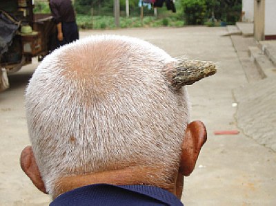 八旬翁頭上長“角”(王為民 楊柳震 張戰(zhàn)斗 攝)
