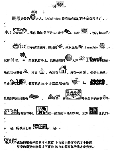 MM、菜鳥(niǎo)、恐龍、粉絲、BT……這些俏皮的“網(wǎng)語(yǔ)”一下子得到了很多年輕人的認(rèn)同!拔医(jīng)常把‘愛(ài)’字寫(xiě)成‘じ☆ve’,里面有日文和英文,它能直觀形象地表達(dá)‘愛(ài)’的含義。”上海市第四中學(xué)初三學(xué)生君君說(shuō),她和同學(xué)在網(wǎng)上聊天時(shí)用的是“火星文”,她的QQ個(gè)性簽名也是“火星文”,她認(rèn)為這樣很可愛(ài),也很有個(gè)性。