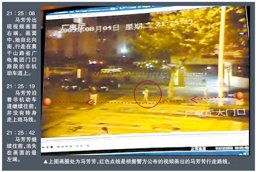 發(fā)布會上,公安機關(guān)還公布了車禍當(dāng)晚監(jiān)控視頻資料。根據(jù)案情通報,該起交通肇事案被害人馬芳芳是在橫穿馬路時距斑馬線南側(cè)10米左右處被肇事車撞上身亡,當(dāng)時,她并沒有走斑馬線。