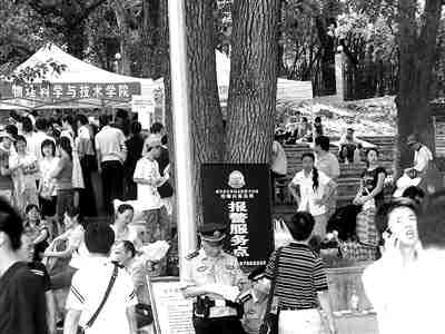圖為警方在學(xué)生報(bào)到點(diǎn)設(shè)置了報(bào)警服務(wù)點(diǎn)