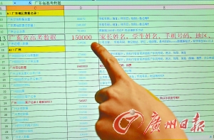 在這份數(shù)據(jù)庫中,記者發(fā)現(xiàn)了一份15萬人的廣東高考數(shù)據(jù),包括家長(zhǎng)和學(xué)生姓名、手機(jī)號(hào)碼等。群發(fā)公司工作人員表示,這個(gè)數(shù)據(jù)是今年最新的,并且暗示“現(xiàn)在剛開學(xué),對(duì)學(xué)生家長(zhǎng)發(fā)‘銀行轉(zhuǎn)賬類’的挺合適”。