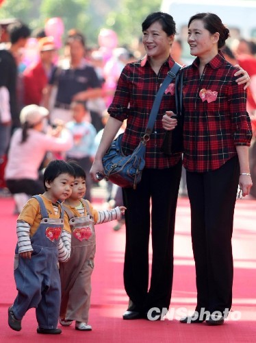 同樣的身高和相貌,再配上相同的穿著,500余對雙胞胎昨日相聚紅領巾公園,參加第六屆雙胞胎文化節(jié)。其中300多對雙胞胎的年齡在5歲以下,最小的只有4個月。