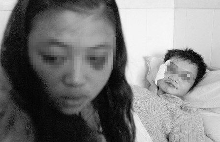 昨日下午,郫縣人民醫(yī)院外科病房內(nèi),面容憔悴的吳慧明靜靜地躺在床上,他右耳處粘滿紗布,雙眼青紫腫脹。病床邊,左眼青紫紅腫的王英蘭,正輕輕地按摩著吳慧明剛剛打完點滴的左手背。四目相對間,滿是愛意。情侶間的溫馨一幕,令病友們感動。但他們并不知道,幾天前吳慧明竟然遭遇了“似乎死過一次”的痛苦……