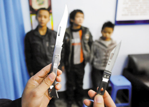 小云姓魏,11歲的他身高只有1米2,一張娃娃臉,看起來根本不像一個盜竊團(tuán)伙骨干,更像是一個小學(xué)生。身上衣著單薄,長期的流浪生活還使得他感染了疥瘡!八昙o(jì)雖小但很不簡單,除了盜竊,還伙同其他流浪兒,多次持刀搶劫婦女和學(xué)生!”反扒支隊副支隊長周濤掏出了一把8厘米長的折疊刀,這是從小云身上起獲的。