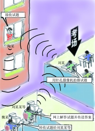 3月14日15時(shí)許,陶某將考生劉某利用作弊設(shè)備從考場內(nèi)傳輸出的試題找人作答,后由魏某通過作弊設(shè)備將試題答案發(fā)送給在考場里的劉某。3月14日下午考試結(jié)束后,陶某聯(lián)系宋某加入,幫助在次日的山東省公務(wù)員考試中作弊。