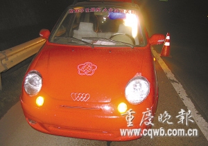 “它是轎車外型,摩托車"內(nèi)臟"!彼緳C(jī)張某說(shuō)這話時(shí)掏出殘疾證,強(qiáng)調(diào)他駕駛的是加了鐵殼殼的三輪摩托車。他坦言,車是前段時(shí)間在主城區(qū)買的,由于是新車,便在高速公路上試起機(jī)械性能——想知道到底能開多快。