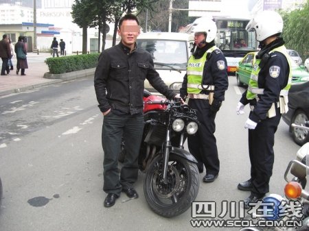 據(jù)當(dāng)時(shí)“拿下”王某的交警三分局民警韓韜介紹,上午9時(shí)30分左右,蜀都大道車流密集,一陣巨大的引擎轟鳴聲遠(yuǎn)遠(yuǎn)從水碾河方向傳來。雖然還沒看到車影,但韓韜立即判斷出:“應(yīng)該是一輛賽摩!惫,隨著轟鳴聲越來越近,一輛紅色賽摩出現(xiàn)在韓韜視野范圍內(nèi),沒有牌照,騎車的是一名黑衣男子,沒戴頭盔!澳繙y(cè)時(shí)速應(yīng)該有100公里。”韓韜立即用對(duì)講機(jī)呼叫沿線交警對(duì)其攔截。